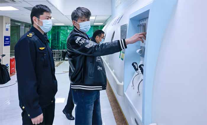 在高压氧区域,督查组重点检查了压力容器的安全运行状态。作为特种设备监管重点,高压氧舱的压力控制精度和治疗环境安全直接关系患者生命安全。检查人员仔细查阅定期校验记录、压力调节参数及密封性情况,深入了解日常巡检机制,要求医院强化细节管理,加强维护保养,定期开展压力监测与泄漏排查,确保设备运行稳定、安全、合规。