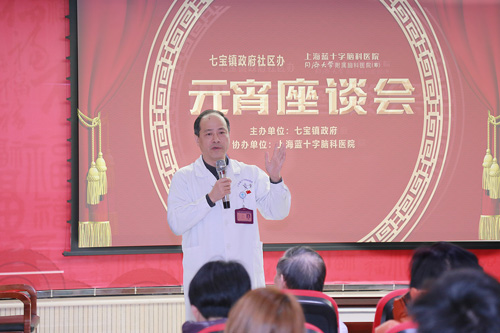 3月2日(正月十五日)下午,由七宝镇政府主办、上海蓝十字脑科医院协办的元宵座谈会在医院举行。召开此次座谈会,目的是加深了解、深度交流、增进感情,为建设幸福健康的七宝建言献策、凝聚共识、汇聚力量。镇政府社区办副主任赵美红、社事办卫计办负责人诸忠德、健康教育条线负责人陆鲍君,上海蓝十字脑科医院党支部书记朱敏、院长项耀钧、副院长童永祥及各社区居委会健康教育条线代表等60多人出席会议。