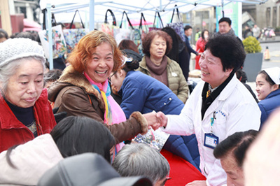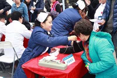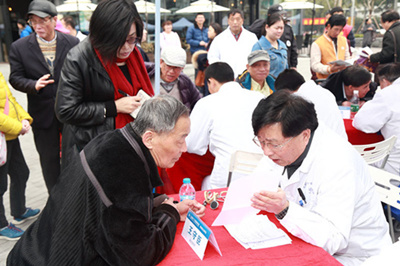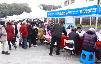 3月5日上午九时半,我院专家顾问、神经外科博士生导师、政府特殊津贴专家唐镇生,神经内科主任医师、教授戴秀珍,神经内科主任医师、ICU专家,神经外科专家五位专家及几位护理人员放弃休息日,组成医疗队和十位工作人员一起,带着血压器、听诊器来到七宝万科广场。三月初的上海依然寒冷,但医疗队的成员们热情十分高涨,前来咨询广大市民的先排队量血压,再由专家们一对一地耐心为他们答疑解惑。