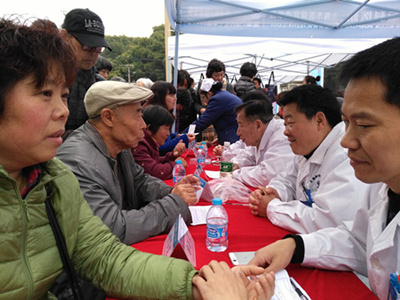 家住附近小区的王大爷出来逛街,当看到医院的这项活动后,马上折回家拿来一袋各类检查报告单,有CT报告也有血液检查结果,今年68岁的他因多发性脑梗曾于去年抢救手术成功,但还有其他的一些症状,头痛、胸闷等,在量了血压后,主任耐心细致地询问了他的以往病史,并认真地将一叠报告单查看后,对王大爷的病情作了治疗上的建议。