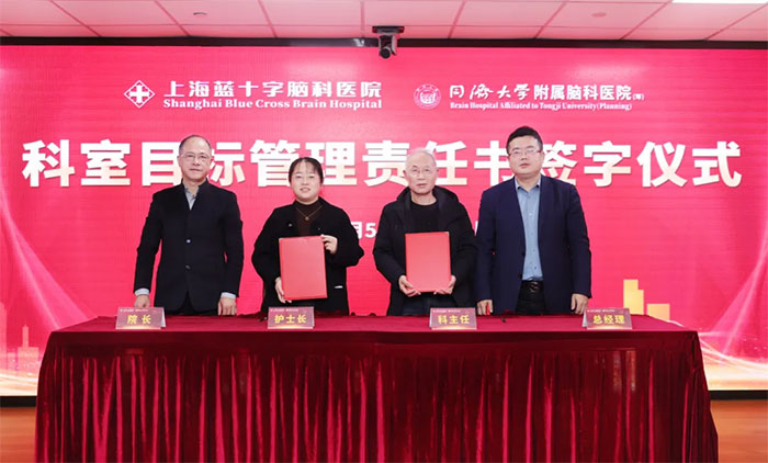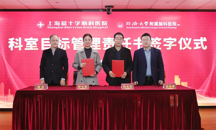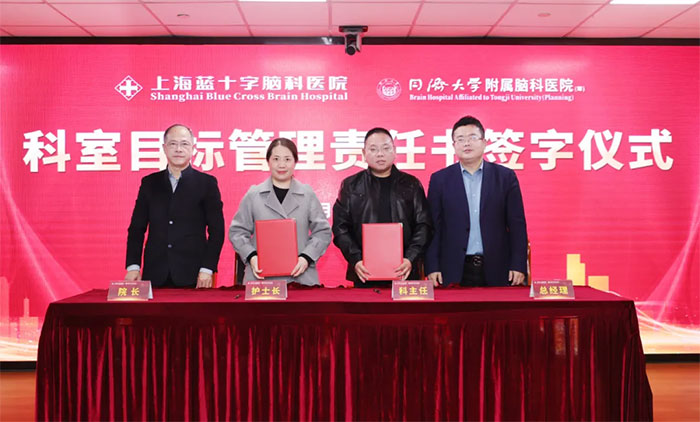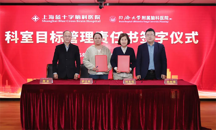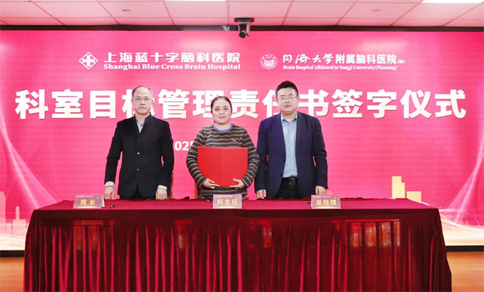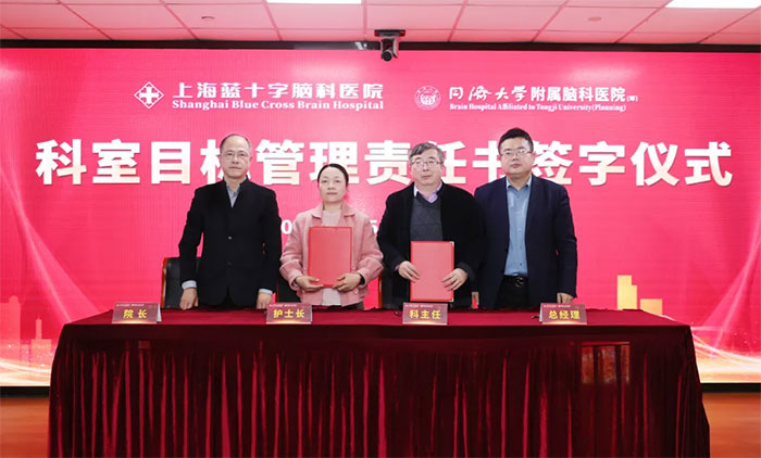 3月5日下午,上海蓝十字脑科医院举办2025年度科室目标管理责任书签字仪式,医院总经理兼书记朱敏、院长项耀钧等院领导班子、各科室主任、护士长等人员齐聚一堂,共同为医院新一年的发展锚定方向、凝聚力量。仪式由副院长潘耀良主持。