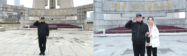 而在莫钢廷的心里,却始终有一个小遗憾。原来,多年前他和救援队队友第一次来到外滩时,由于人生地不熟加之停留时间仓促,最终未能前往人民英雄纪念塔。这个积存多年的小遗憾,在莫钢廷大病初愈后得到了弥补。他和冯凰芬来到纪念塔前,郑重地行了军礼,瞻仰和怀念为解放上海而献出生命的革命先烈们。随后,莫钢廷夫妇又来到外白渡桥前,这些建筑记载着多少沧桑、多少悲欢离合......