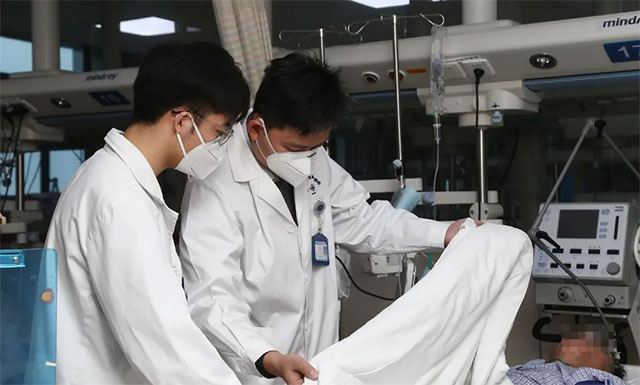 ▲ 正月初三早晨,张琪博士(中)与刘春医生查看患者病情