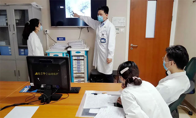 “江XX,男,51岁,2020年1月23日入院……”为进一步加深科室医生对患者病情的了解,培养主动分析问题、解决问题的能力,脑血管病科还利用早交班会进行病例演示,并对下一步治疗方案展开评估讨论。