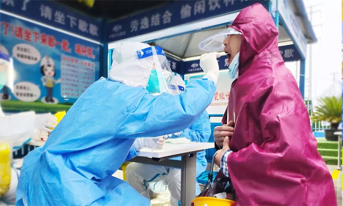 当天,陈颖辗转两个采样点,采集了1000余例样本,手酸、腰痛......一个字“累”,但她觉得很值得,很有意义。当转场到工地,一身“大白”装的她从车上下来时,工人们惊喜地说“啊,医生来了”。听到这句话的一瞬间,陈颖感到责任感、使命感喷涌而出,“感受到工友们充分的信任与依赖。那一刻,就觉得所有的辛苦都值了。”