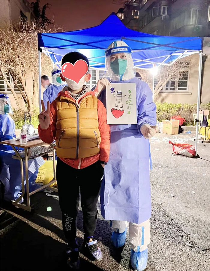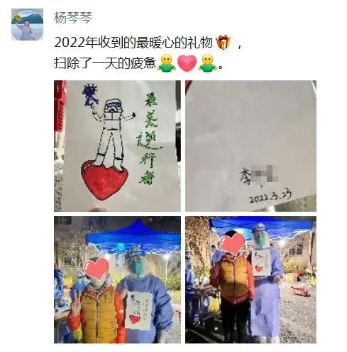 后来他告诉我,知道今天采核酸,他下午就一直在家里画。画好了看我们还在忙,就一直等着,说怕打扰到我们。等一会不放心,怕我们走了,就来看一下,一直等了一个多小时。直到最后,我们刚结束,他就立刻送了过来。“是你们的付出才让我们能够安心在家”,他悄悄在我耳边说。