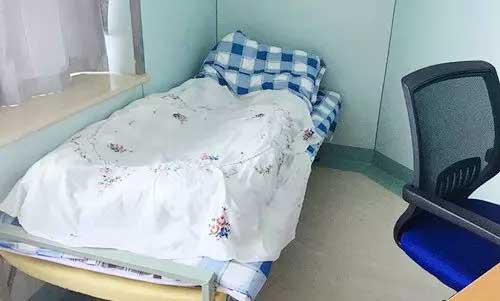 ▲ 搭个简易床铺,休息室就是李鲁萍的“家”