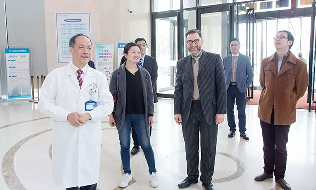 4月2日,德国柏林大学附属夏里特(Charité)医院国际合作主管Lutz Steiner、美国芝加哥大学医学中心(The University of Chicago Medicine)国际业务总监Mark Wen(Ph.D.)分别莅临上海蓝十字脑科医院,就双方开展国际医学战略合作相关事宜进行参观考察。德国柏林大学附属夏里特(Charité)医院和美国芝加哥大学医学中心(The University of Chicago Medicine)都是国际知名医疗机构,他们都对与上海蓝十字脑科医院的合作很感兴趣,通过交流为脑科医院深化国际合作增添了更多的选项。卓立强董事长等公司领导,总经理兼党支部书记朱敏、院长项耀钧等院领导接待了来宾。