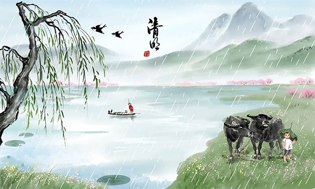 ▲ 清明时节雨纷纷,路上行人欲断魂