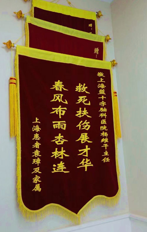 后记:其实,在上海蓝十字脑科医院,医生从患者和家属那里获得的锦旗何止两面墙,杨主任这里不过是一个缩影,这都是患者和家属们对医生高明医术真心表达谢意的最高赞美,是最宝贵的口碑,激励着蓝十字脑科为更多患者全心服务。