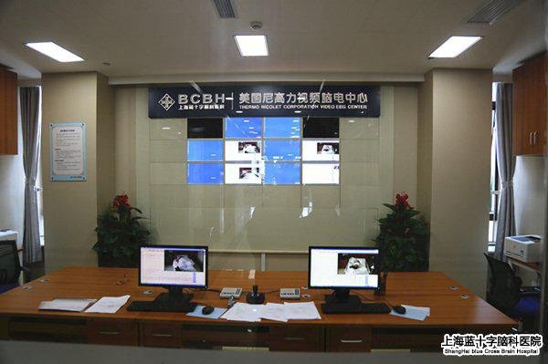 上海蓝十字脑科医院视频脑电引进美国尼高力(Nicolet)全套神经电生理监测设备,其中包括3台128导长视频脑电图仪、7台32导视频脑电监护仪、2台24小时动态脑电图仪、2导便携式脑电图仪、16导术中神经监护仪、4通道肌电诱发电位仪、大脑皮层刺激器、以及经颅多普勒超声系统等,除经颅多普勒超声系统为同样先进的美国DWL仪器外,均为美国尼高力先进仪器。