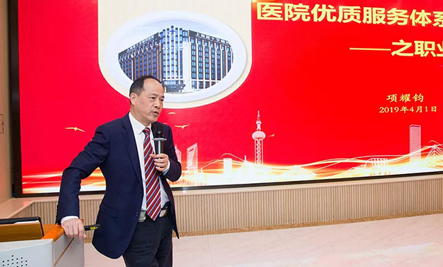 ▲ 项耀钧院长主讲《医院优质服务之职业精神》