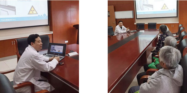 4月25日上午,上海市七宝镇社区居民在上海蓝十字脑科医院参加了一场别开生面的科普讲座。上海蓝十字脑科医院放疗科王晓东主任在一片轻松愉快的气氛中向大家讲解了肿瘤防治的相关知识,正在放疗科进行治疗的病人及家属也主动来到会场参与学习和互动。