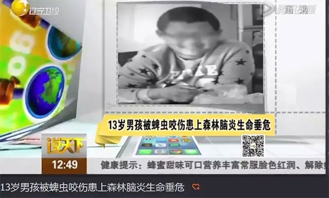 《新文化报》曾报道,吉林桦甸男孩周通进林子里干活,左胸被虫子咬后,头痛发烧,最后住进ICU,生命垂危。