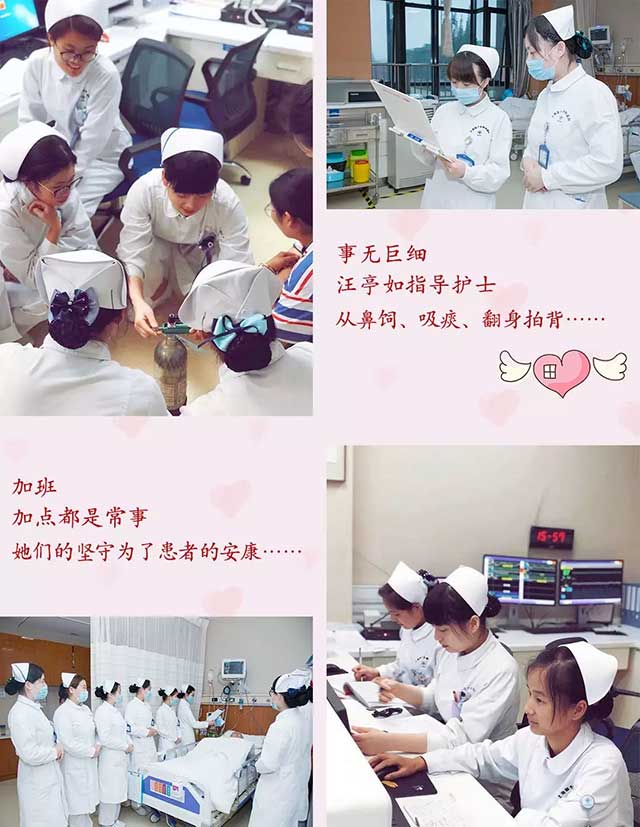 成为护士长的汪亭如更加努力,她要不断的提高自己的管理能力和应急能力,才能更好的去指导、协调、处理科室的各种事情。她不仅对自己要求高,对护士们要求也很高,空闲的时候她会手把手教新来的护士,从换药插管到并发症的护理,从鼻饲、吸痰、翻身拍背、留置导尿到口腔护理、伤口换药、病情观察等基础技能,事无巨细。3B的护士们在她的带领下,所有的护理工作都有条不紊的进行着,她说虽然护理工作脏、累、差,但大家都很努力,科室的12个护士,没有一个喊累的,加班加点都是常事,每一位护士都很优秀,而护士赵晓雨表现尤为突出。