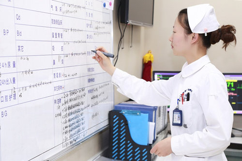 问起她有没有经历过让自己特别感动的瞬间,范维函说:“有啊,在患者和家属给我肯定的时候,还有忙得四脚朝天、找不到北的时候,上夜班彻夜不眠的时候,患者对我说:‘你们真辛苦’,‘歇一歇吧’;还会递给我一瓶矿泉水、一块面包,这都含着他们对护理工作的理解和关爱,都让我特别的感动!”