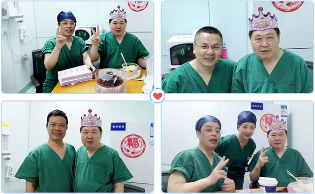 “很温暖,很感动,谢谢蓝十字,谢谢大家。”虽然是过生日,但李教授还是奋战在手术台上,一如往昔奉献着。就在吃长寿面的间隙,李教授手中的电话不断,都是咨询病情的病人,李教授边吃边耐心回答。对李教授来说,几乎永远没有休息日,他的作息时间表上难有上下班之分。他的从医生涯里始终视病患安危高于一切,一片丹心济世救人,令人敬佩。