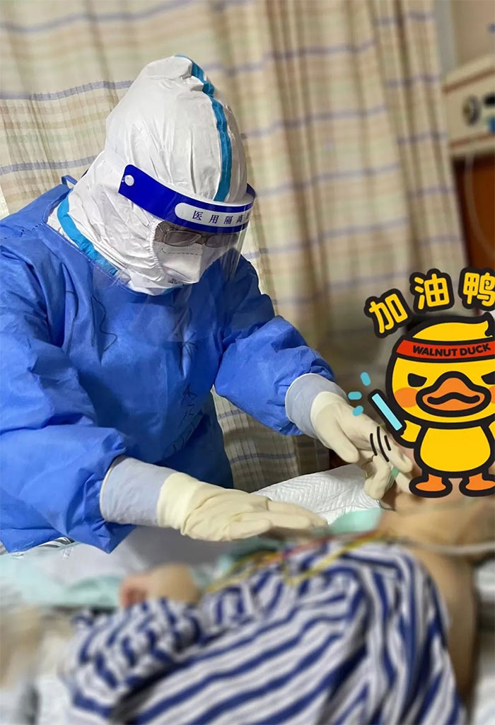 3月7日开始7B全体护理人员克服个人及家庭的各种困难,很多护士坚守岗位已近两月。科里人手紧缺时,宋会敏、谢童童、程文阳、张慧敏、董梓一、刘红霞每日穿着厚厚的防护服都是连续工作12小时,日夜交替2班倒,精心护理着近50名患者。崔慧慧连着上大夜班,错过了孩子的三岁生日;冯敏护士意外摔倒,导致后颅出现拳头大小皮下血肿,冰袋冷敷着依然岗位坚守至今;姚永茜、蒋新晨、陈琳结束隔离立马返院,或驻守科室,或支援医院隔离病区;付婷婷两度请缨外出到区集中隔离点支援防疫工作……