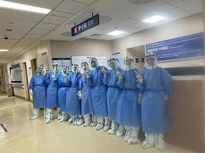 当见到护士姑娘们的逆行背影时,护士长张秀娟潸然泪下,她说工作30年,这些天一直被感动着,谁说年轻人没有担当,这就是我们90后蓝十字护理人的担当和使命,是我们护理大团队的情怀和风采!