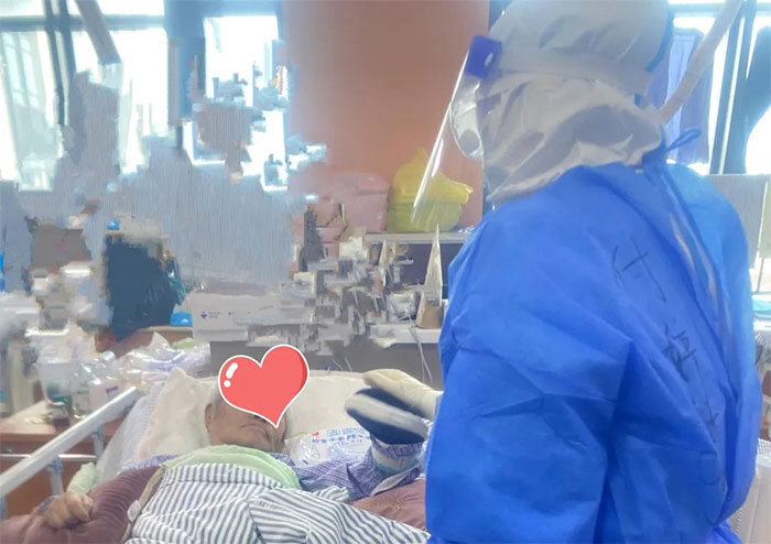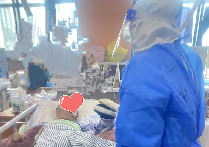 可即便深深的压痕、疲惫的神态,也挡不住医者之美;坚毅的目光,依然透射着患者在她们心中第一位的坚定信念。病区内55岁的谢某,因右侧脑梗和肺气肿于3月19日入院,当时患者不能言语,无法行走,由他爱人照顾,她爱人感染病毒后外出隔离治疗,护理团队就承担起“家属”的责任,给他喂饭、翻身擦身、处理大小便,待他爱人半个月隔离康复回来,看到能开口说话又能下地行走的谢某时,抱住正在病房照顾的护士宋会敏情不自禁地哭起来,激动得难以言表。