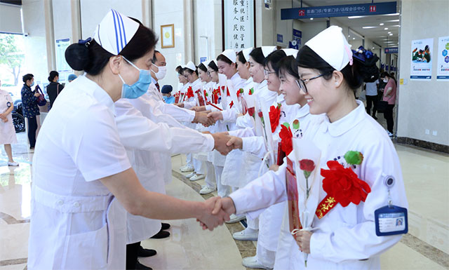 5月12日上午9:30,医院门诊大厅格外庄重喜庆,十名佩戴红色胸花的护士整齐地站立着,总经理兼书记朱敏、院长项耀钧等医院高层管理团队、公司特聘护理专家朱建英教授逐一为她们颁发“优秀护士”荣誉证书。这是2020年5.12国际护士节“优秀护士”表彰大会最荣耀的一幕。