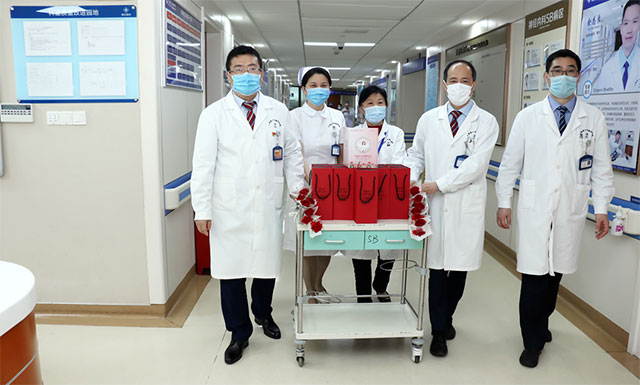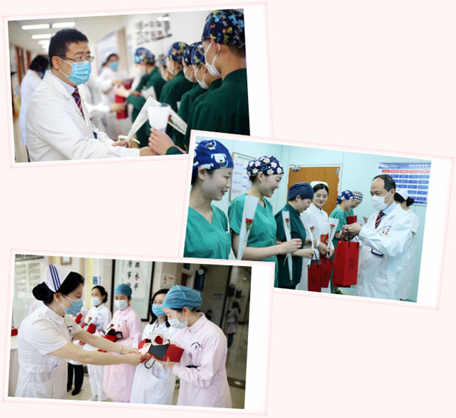 表彰结束了,院领导们又立即来到临床一线各个科室,慰问辛勤工作的“白衣天使”,送上节日的祝福与慰问礼物。