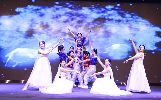 上海蓝十字脑科医院带来的现代舞《青春火焰》,讲述了在脑科医院的康复科,有一支康复师团队,处处演绎出炽热的青春活力。