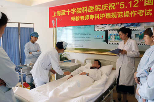 据悉,为庆祝今年的5.12国际护士节,上海蓝十字脑科医院院已在4月24日特别邀请了上海市护理实践培训基地冯宗媚老师来主持护理规范操作考试,旨在对蓝十字脑科医院今后规范护理工作、指导落实责任制整体护理进行全面的考核,从而提高护士队伍技术操作水平和专业服务能力,深化“以病人为中心”的服务理念,促进蓝十字脑科医院全体护士在优质护理服务工作上再上新台阶,人人争做新时代的“南丁格尔”。