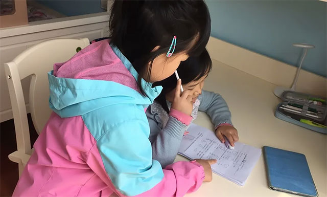 ▲ 李楠楠大女儿很懂事,常常给妹妹辅导功课
