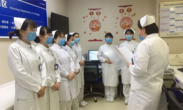 ▲ 针对病区重症患者,李楠楠强调护理要点