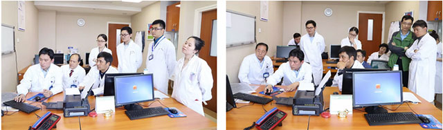 下午,刘建民教授带领一组人员深入脑血管病病区,开展教学查房,对6例脑血管病患者作诊疗技术指导。随后,在医生办公室,对2例急性脑梗、1例烟雾病及1例脑出血疑难病例进行了讨论。