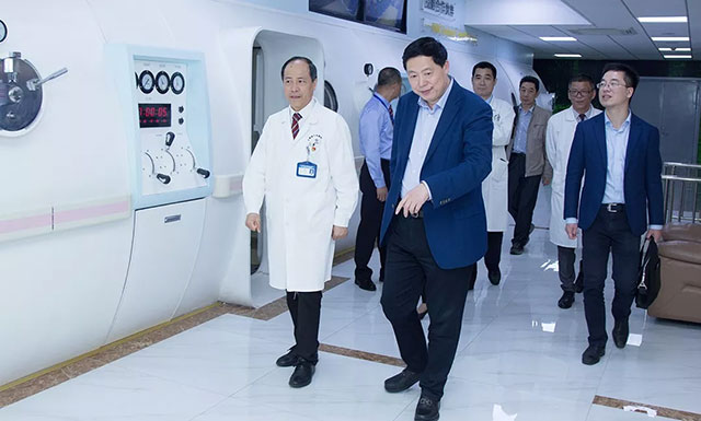 考察团首先听取了医院发展建设的介绍,并先后参观了医院手术室、重症监护病区、神经内科7B脑血管病病区、美国尼高力视频脑电室、神经康复医学科、高压氧科、影像科、DSA介入科及放疗科,对医院的特色科室和设施设备作重点参观考察。