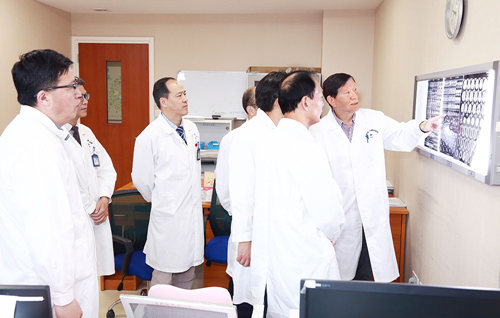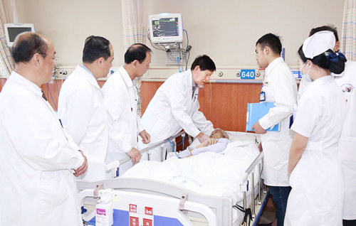 走马上任的第一天,沈教授即深入科室展开大查房,查看了科室重点病人,并与囊括政府特殊津贴专家侯増欣等的蓝十字脑科外科专家团队针对三位待手术的患者进行了会诊讨论。据了解,这并不是沈教授第一次携手与蓝十字的亲密协作。自蓝十字建院9年以来,沈教授对我院的发展一直给予了密切的关心与关注,尤其是对我院神经外科学科建设更是大力支持。每遇重大疑难病例或者学术问题,沈教授均会到院参与并指导。如今,沈建康教授从客座教授到正式成为我院神经外科主任,“我们终于如愿以偿了,蓝十字脑科外科学科发展如虎添翼,是众多脑病患者的福音!”副院长周克祥说。