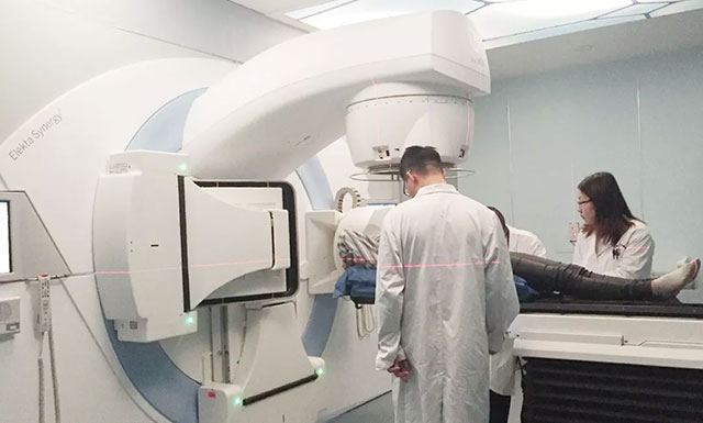 王晓东主任表示,对于患者的放射治疗,首先具有放疗资质的医师会根据患者的临床资料、病理诊断和影像结果,确定其是否满足放疗条件,如果满足会先制定初步放疗方案,之后会根据患者CT定位的影像资料,再制定完善的诊疗计划和优化评估计划。放疗患者一般只需要进行一个疗程的治疗,一周需治疗5次,总共为30次左右,放疗的具体次数也会根据患者的后续治疗情况,进行适当的调整。