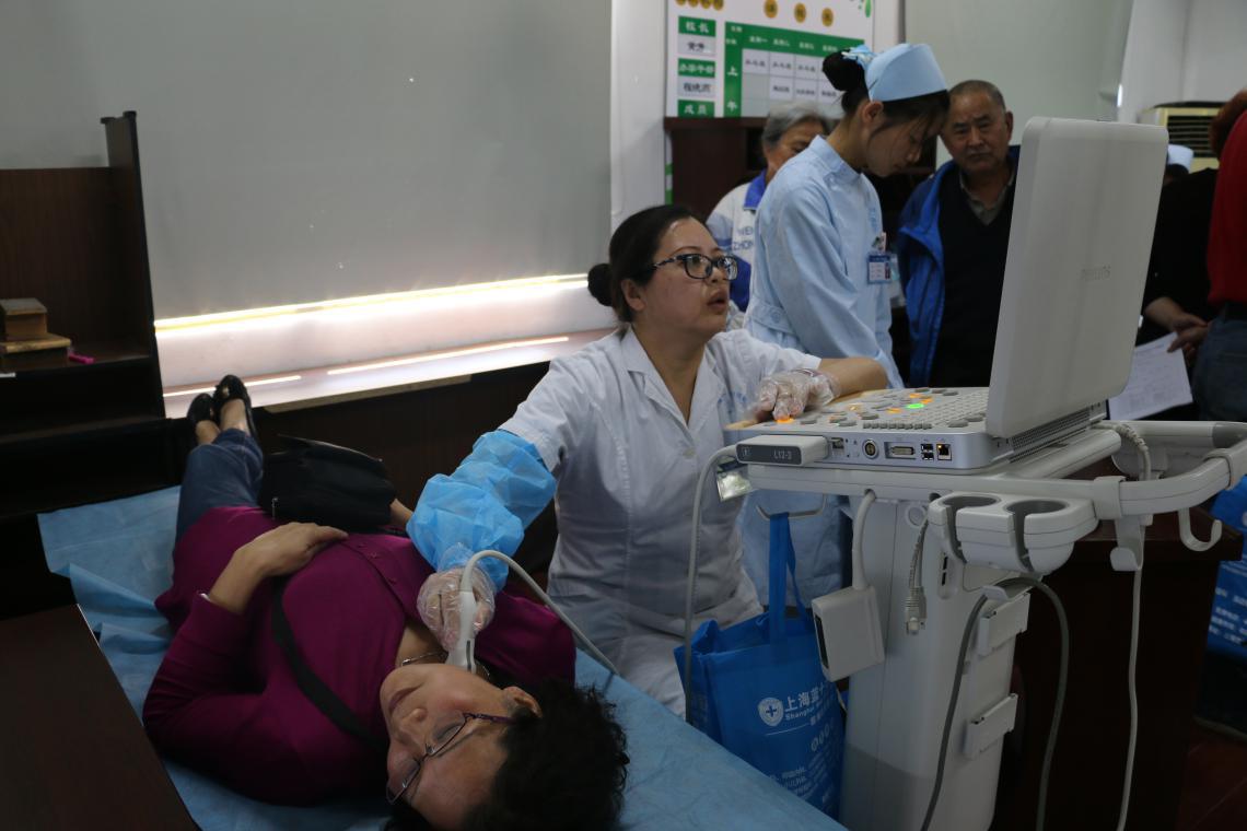 健康讲座和现场咨询之后,医院还安排老人们到B超室、检验科等免费接受了颈动脉斑块B超检查,血糖、血压测量等。