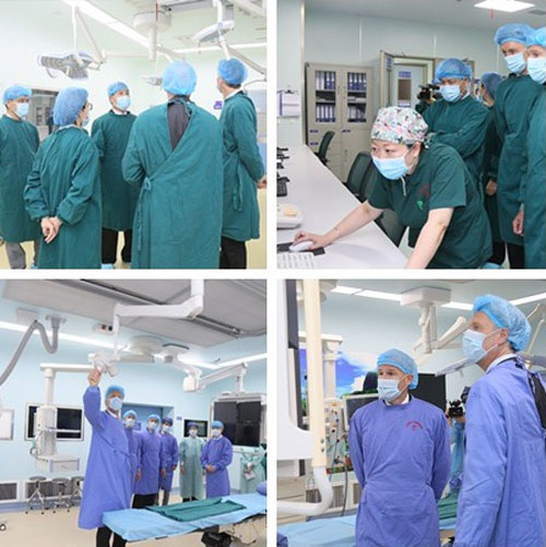Bert Van Meurs一行抵达医院后,受到了医院各级领导和全体医护人员的热烈欢迎。在项耀钧院长引领下,一行人先后参观了全数字化DSA介入手术室和Hybrid-OR复合手术室。项耀钧院长就手术室的使用情况和医疗质量管理流程,以及目前手术开展的具体案例,进行了详细讲解和说明。