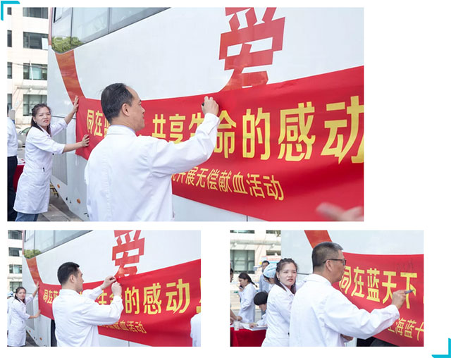 ▲ 院长项耀钧,副院长潘耀良、周克祥等亲临活动现场号召大家踊跃参与献血
