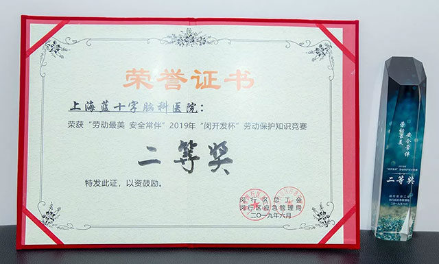在此次决赛中,上海蓝十字脑科医院代表队除了获得“ 2019年闵行区劳动保护知识竞赛决赛”二等奖的好成绩外,参赛成员康复科组长冯红红更是获得了“优秀个人奖”,这与团队的协作及她个人的努力是分不开的。自2015年7月,冯红红就职于上海蓝十字脑科医院康复医学科四年以来,她表现突出,连续两年被评为年度个人嘉奖,并在国际JCI认证评审期间因突出表现,被评为先进个人。