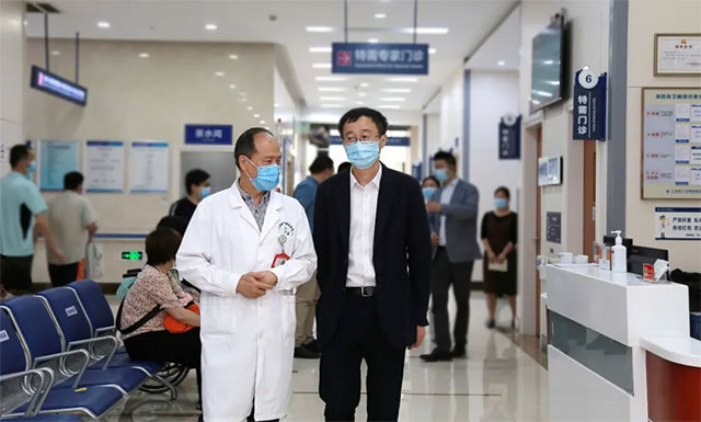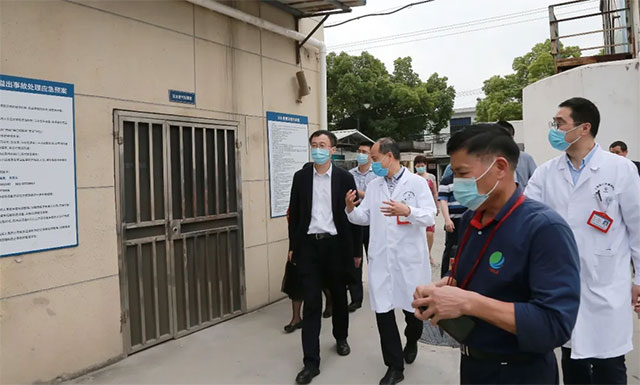 6月8日下午,上海市卫健委主任邬惊雷带队莅临上海蓝十字脑科医院“飞行”检查疫情防控工作,闵行区卫健委主任杭文权等陪同。上海蓝十字脑科医院院长项耀钧等院领导陪同迎检。