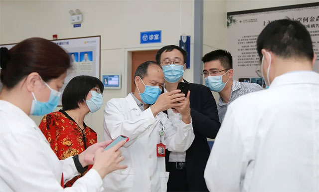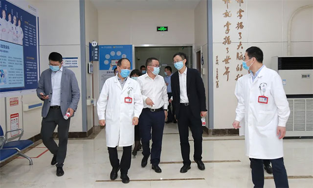 ▲ 上海市卫健委主任邬惊雷(前排右)一行抵达医院