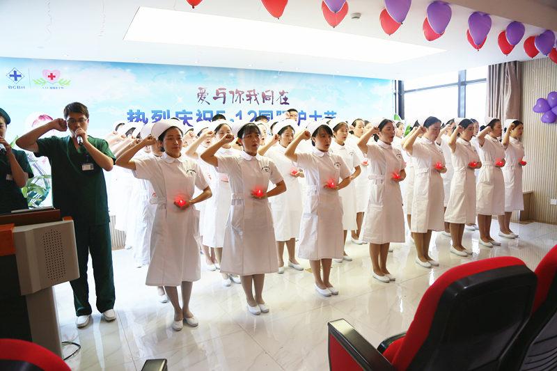 “我宣誓:我志愿从事护理专业,信奉人道主义精神......燃烧自己,照亮别人......让我们永远记住这庄严伟大的誓言!”授帽结束,在九病区ICU张棕智护士长及八病区ICU赵德梅护士长的领誓下,48名新护士高举右手,神情肃穆,在授帽仪式上虔诚、庄严地宣誓。