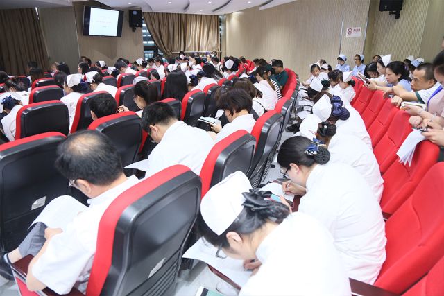 首期大讲堂主题为《如何提升医院优质服务》,由潘耀良副院长主持,郭俊艳副院长主讲。总经理兼党支部书记朱敏、院长项耀钧、护理部叶文琴教授等院领导及全院200多位员工到堂听课,共同学习。