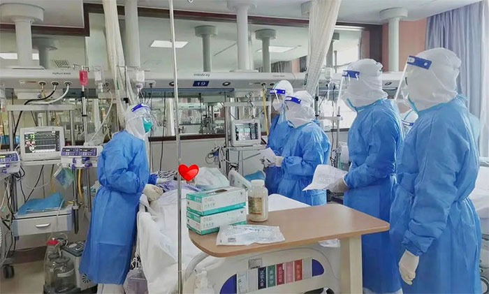 病房里每天都上演着与死神的生死搏斗,心衰的、呼吸衰竭的、感染休克的……医护人员不停地奔波于床头、仪器、电脑之间,出现在各个危重症患者床旁。监护仪、血滤机、呼吸机不停地运转,气管插管、胸腔置管、大血管置管、血液透析、静脉穿刺、纤支镜治疗等临床诊疗活动无一搁浅。张庆成主任、护士长胡燕华每日查房,布置、协调治疗工作,使一个个生命得到抢救。