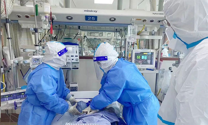 患者刘某,为脑出血高龄患者,遗留意识不清、四肢瘫痪等,长期卧床继发肺部感染。期间,刘某感染新冠,并发心衰及呼吸衰竭,命悬一线,张庆成主任顾不上自身风险,带领医护紧急予以气管插管和呼吸机辅助治疗,加强巡视查房及病情监测,并及时处置、调整救治措施,终于将患者从死亡边缘拉了回来……每天,8A团队至少需要抢救7、8名像刘某这样的危重症患者。“其实,为刘某这样的患者实施有创操作,团队是承担了很大的被感染风险的”,8A团队深知这一点,“但我们不能看着患者死,更不能当逃兵!”