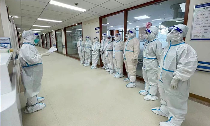 与之同时,科学部署、落实落细各项防疫工作,张庆成主任亦是雷厉风行:加强环境消杀、人员防范和健康监测;加紧阴性和阳性区域功能性布局设置;所有人员一经发现异常,快速汇报,迅速隔离……多措并举,迅速果决,扎牢防控屏障。