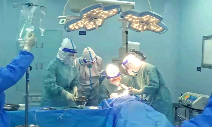 ▲ 在严密的防护措施下,张琪博士开展手术