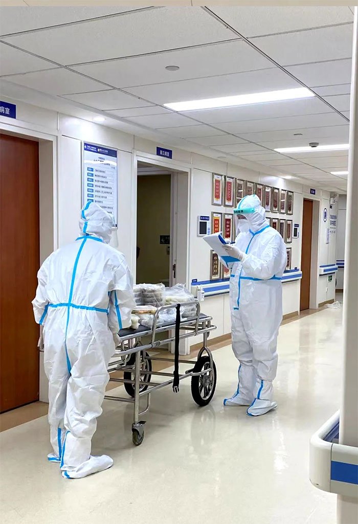 ▲ 科室医生主动承担起配送餐食等工作