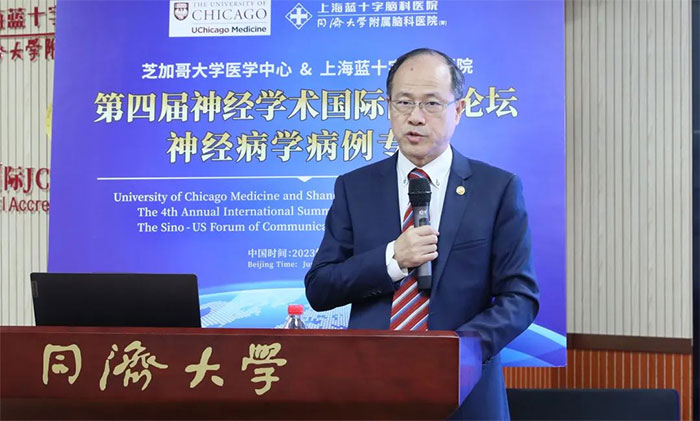 仲夏六月,万物并秀。6月20日晚,第四届芝加哥大学医学中心(UCM)—上海蓝十字脑科医院神经学术国际高峰论坛顺利举行。国内外众多知名专家、学者齐聚一堂,通过病例分享和自由研讨的形式,就国内外神经病学领域前沿技术与进展等进行交流,共话神经学科的美好蓝图。本届论坛采用线下+线上的“双线”会议模式,在上海蓝十字脑科医院设主会场,近4000人同步在线观看了直播。