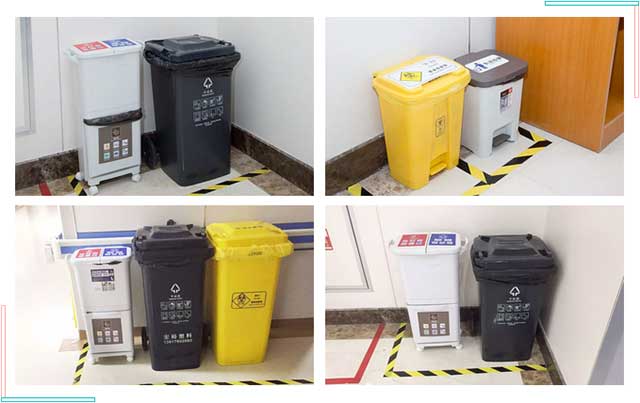 针对此次垃圾分类的实施工作,在做到宣传告知准确规范、保洁人员作业规范外,从6月19日开始,医院对原垃圾暂存处进行整体改建,增设垃圾分拣区;对各个病区及公共区域垃圾分类容器配置予以规范,进行分类垃圾桶定置与墙面标识张贴,共计更换不同规格、尺寸的垃圾桶100余个,真正做到从根源上进行垃圾分类。