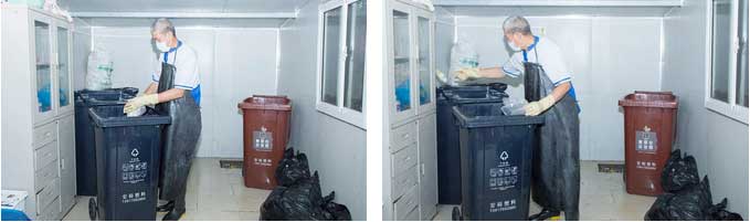 为确保垃圾分类的准确性,医院增加两名保洁员,专门对垃圾进行末端分拣。